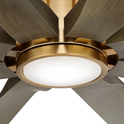 - Soft brass finish motor. Eight hand-painted weathered oak finish molded ABS blades.