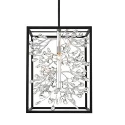 Possini Euro Design Black Silver Pendant Chandelier 15 1/4″ Wide Modern Clear Crystal Flower Vine 4-Light Fixture For Dining Room House