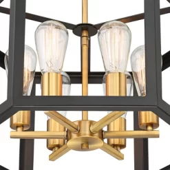 Possini Euro Design Black Warm Brass Cage Foyer Pendant Chandelier 16 1/2″ Wide 4-Light Mid Century Modern For Dining Room House