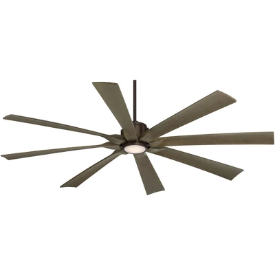 The Defender™ large outdoor ceiling fan from Possini Euro Design® is rated for use in damp locations. It comes in a matte black finish motor and eight weathered oak finish ABS blades with a 70-inch blade span. An energy-efficient LED light module includes a polycarbonate lens. A handheld remote control is included for operation.