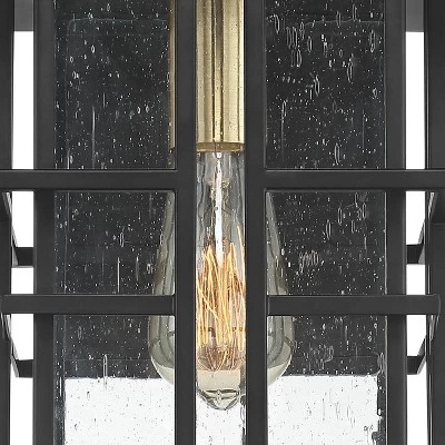 Enhance the curb appeal of any outdoor design with this modern outdoor wall light. A simplified geometric frame in a black finish complements the seedy glass over a single bulb. The bulb socket features a burnished brass finish for that pop of unexpected metallic color.