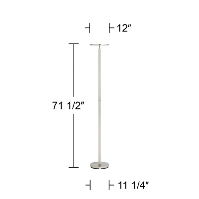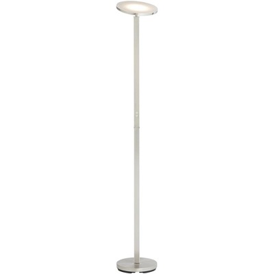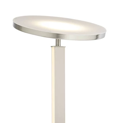 The Aventura torchiere floor lamp brings a new sense of modern style to your home. Presented by the Possini Euro Design brand, this sleek and sculptural design features three integrated LED modules, offering both functionality and visual appeal. Use the top light to provide general room illumination, or switch on the side lights to create a softer, ambient glow ideal for relaxing evenings. The top LED panel can be adjusted from flat to a sideways position, allowing you to customize the lighting direction. Finished in contemporary materials, the Aventura is a bold yet refined statement piece for any modern space.