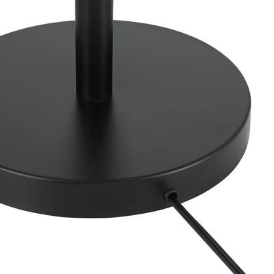 - Black finish base and pole. Metal construction. Frosted glass top light. 8-foot long cord.