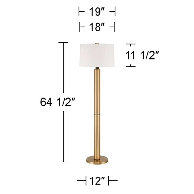 The Boulevard floor lamp offers a modern luxe look for seating areas and living room lighting. Placed next to a sofa or chair it provides bright lighting for reading, or you can place it in a corner for general room illumination. The segmented column comes in a warm gold finish with contrasting bronze accents at neck and mid-column. A tapered white fabric drum shade and 3-way socket switch completes the look.