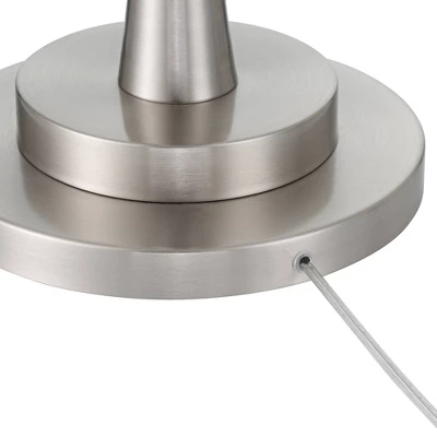 Brighten up your living space with this downbridge floor lamp from the Possini Euro Design brand. This piece is crafted from metal and is finished in brushed nickel with a linen fabric shade to diffuse light beautifully. Perfect next to your favorite reading chair, behind a sectional or bedside.