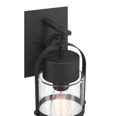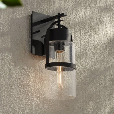 Displaying industrial inspired elements in a contemporary modern package, the Caramela outdoor wall light from the Possini Euro Design® brand is ready to upscale your home’s curb appeal. Stylish black finish serves as an understated backdrop with minimalism visual interest. The clear seeded glass shade clearly displays the singular bulb, adding a naturalistic charm. Wet location rated, this wall light is perfect for all of your home’s exterior spaces.