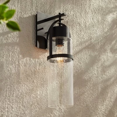 Displaying industrial inspired elements in a contemporary modern package, the Caramela outdoor wall light from the Possini Euro Design® brand is ready to upscale your home’s curb appeal. Stylish black finish serves as an understated backdrop with minimalism visual interest. The clear seeded glass shade clearly displays the singular bulb, adding a naturalistic charm. Wet location rated, this wall light is perfect for all of your home’s exterior spaces.