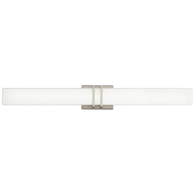 Upgrade your vanity bathroom with the sleek, modern look of this linear bath light. This bathroom wall light features a rectangular silk-screen glass shade set against a brushed nickel finish backplate. Energy-efficient LED modules are built directly into the design to provide power-saving lighting. Can be installed vertically or horizontally.