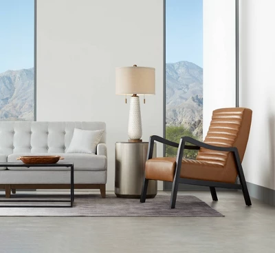 Possini Euro Design Kingston Modern Mid Century Table Lamp 32 3/4″ Tall White Grooved Patterned Ceramic Taupe Drum Shade For Bedroom Living Room House