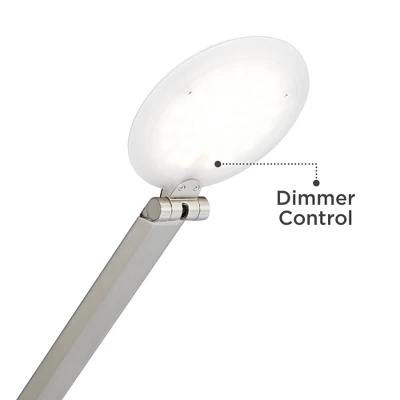 Modern and minimalist, the Kobie floor lamp from the Possini Euro Design® brand is perfect for shining a light on your tasks or crafts. A joint on the arm allows for height adjustment, while another joint at the head allows you to adjust the angle of illumination. A classic satin nickel finish completes the understated look.
