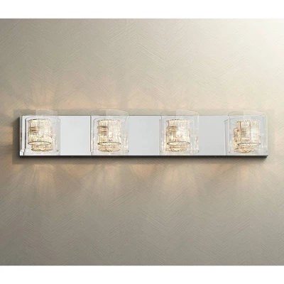 - Contemporary four-light bathroom wall light from the Possini Euro Design brand.