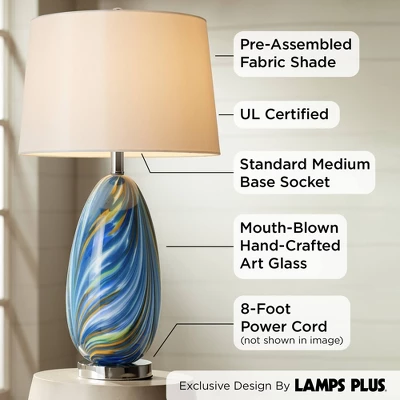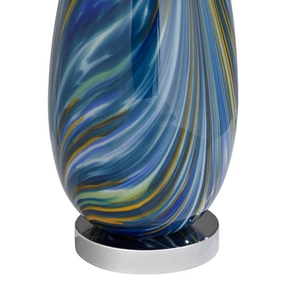 Swirling colors offer a hypnotic effect that transforms this glass table lamp into a functional work of art. Possini Euro Design® styled this elegant lamp from hand-blown art glass and touched it up with a metal base and accents. A simple on-off switch makes operation a breeze.