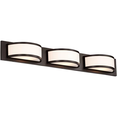 The Possini Euro 37″ Wide 3-Light Dark Bronze Vanity Bath Light blends modern elegance with industrial-inspired design, making it a standout addition to any contemporary or transitional bathroom space. The fixture features a rich dark bronze finish, giving it a sophisticated and slightly rustic touch, while the three clear glass shades allow for maximum light output, creating a bright and inviting atmosphere.