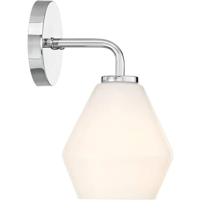 - Chrome finish. Opal glass shade.