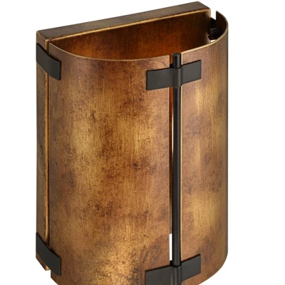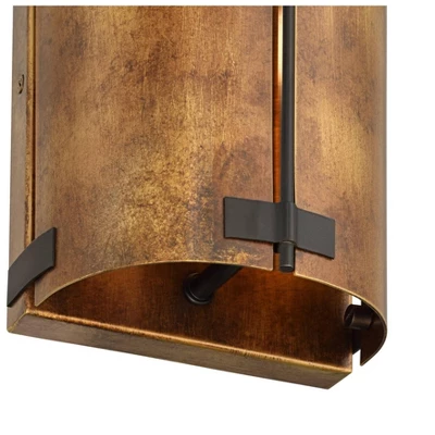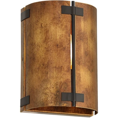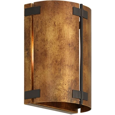 Dress up a casual entry with the stylish Julian single light wall sconce, from the Possini Euro Design® brand. A curved shade features a multi-tonal rustic bronze finish that glows in rustic or industrial décor. Clean lines make this a fabulous addition to an inviting living or bathroom space.