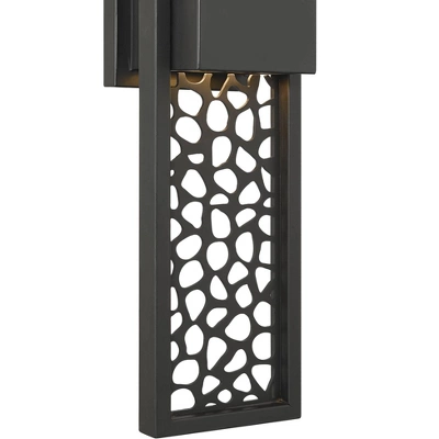 Update your home with modern charm and sensibility with the Miele LED wall sconce from the Possini Euro Design® brand. This design uses an energy-efficient LED module directing illumination downwards. The matte black finish frame serves as an eye-catching backdrop with a honeycomb-like pattern. The Miele light is wet location rated for indoor use.