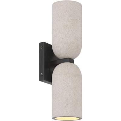 Transitional style has never looked more appealing with the minimalist style Olethra wall sconce set of two from the Possini Euro Design® brand. This sturdy, eye-catching design features a classy black finish metal backplate, allowing the two white speckled cement shades to really pop with unending style. Perfect for modern and transitional homes, the Olethra wall sconce utilizes LED bulbs for energy-efficient illumination. This design is damp location rated for indoor use, and can be mounted either vertically or horizontally.