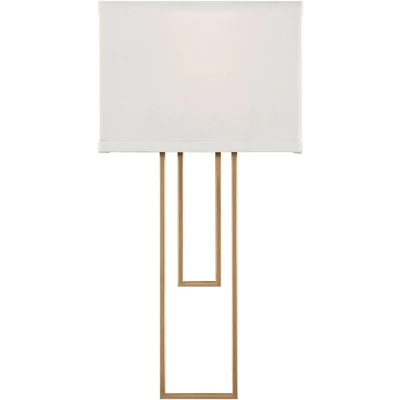 With a touch of glam – luxe appeal, the Siobhan wall sconce is presented by the Possini Euro Design brand. This vibrant design catches the eye with its elegant gold finish frame and decorative stems. A white fabric shade sits stop this piece, diffusing illumination the single bulb for an artistic approach to lighting. Damp location rated, this design is perfect for any room in your home.