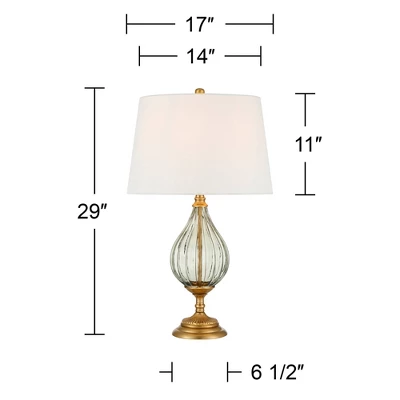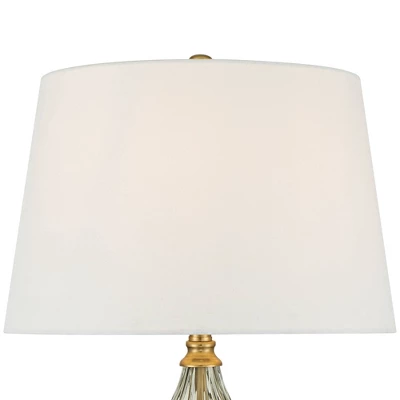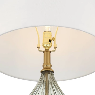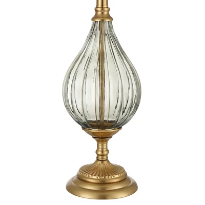 Add a touch of elegance to your space with the Possini Euro Rebecca table lamp. At 29 inches high, this striking design features a gracefully curved teardrop-shaped base made from smoked glass, giving it a rich, translucent depth that plays beautifully with light. The smoked finish provides a dramatic contrast to the crisp white drum shade, while brass finish hardware adds a refined modern touch. Ideal for contemporary living rooms, stylish bedrooms, or entryway consoles, the Rebecca lamp offers both soft illumination and standout style.