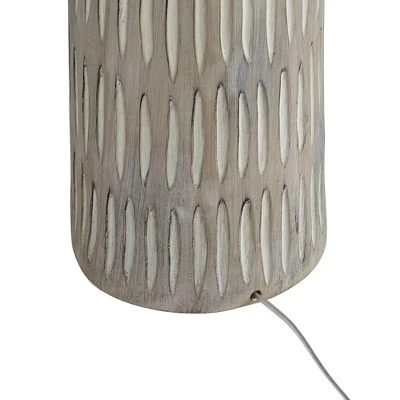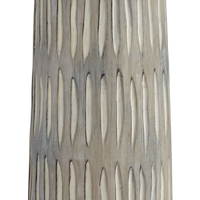 - Faux wood cast resin lamp base with natural gray finish. Organic style with a vertical carved-look pattern.
