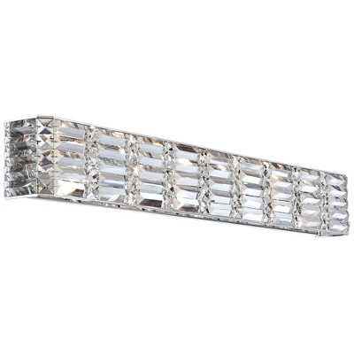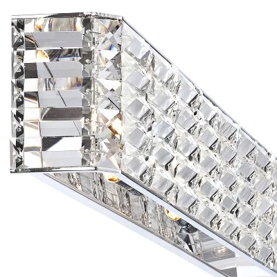 Complete any contemporary space with this beautiful bathroom wall light. It comes in a sleek chrome rectangular frame, with clear crystal accents embedded on the front and sides for a striking elegant touch. This versatile bath light can be installed vertically or horizontally, and is ADA-compliant for extra convenience.